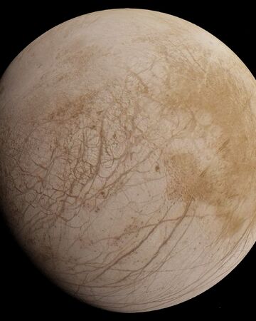 Complex and beautiful patterns adorn the icy surface of jupiter's moon europa, as seen in this color image intended to approximate how the satellite might appear to the human eye.